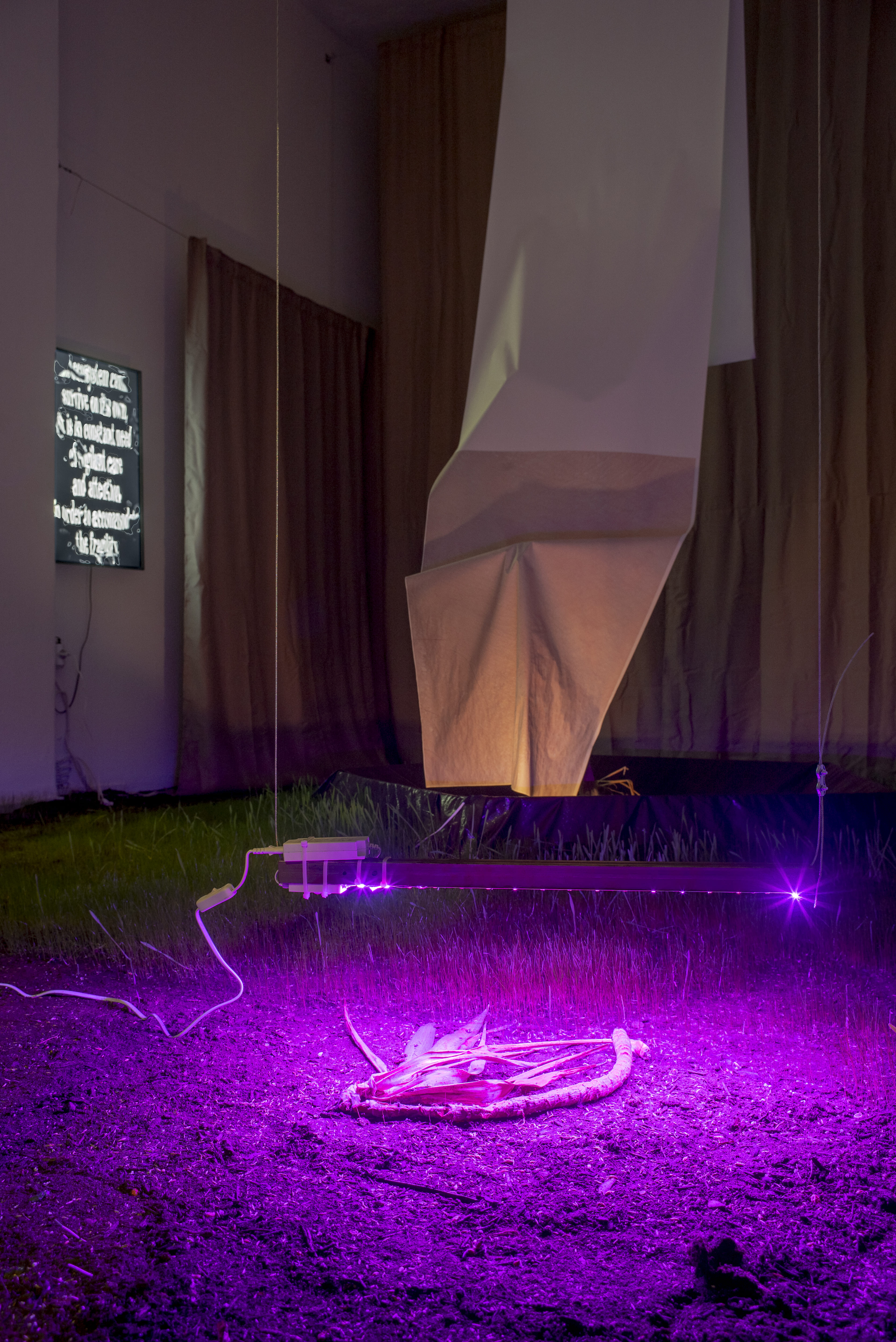 Soil, seeds, dead tree, branch, video, digital print, pool
